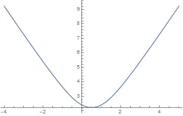 시간에 대한 그래프, \(x\)를 제외한 다른 변수는 1로 처리함 실제로 그래프의 개형을 보면 극소(local minimum)에서 최솟값을 가진다는 것을 알 수 있다. 따라서 미분해서 \(0\)이 되는 \( x \)를 찾으면
