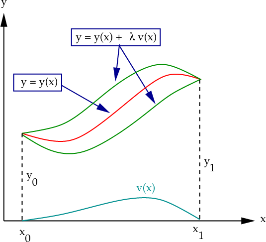 $$J[y] = \int^{x_2}_{x_1} f(y, \dot{y}; x) dx \tag{2}$$